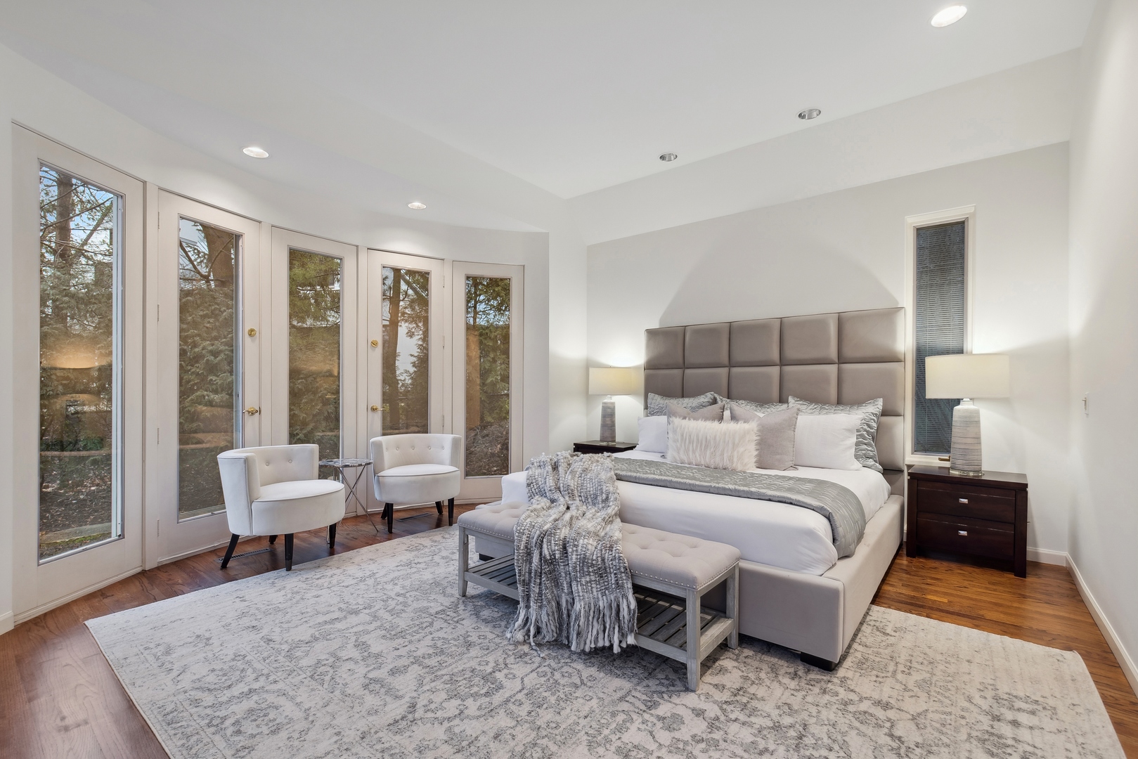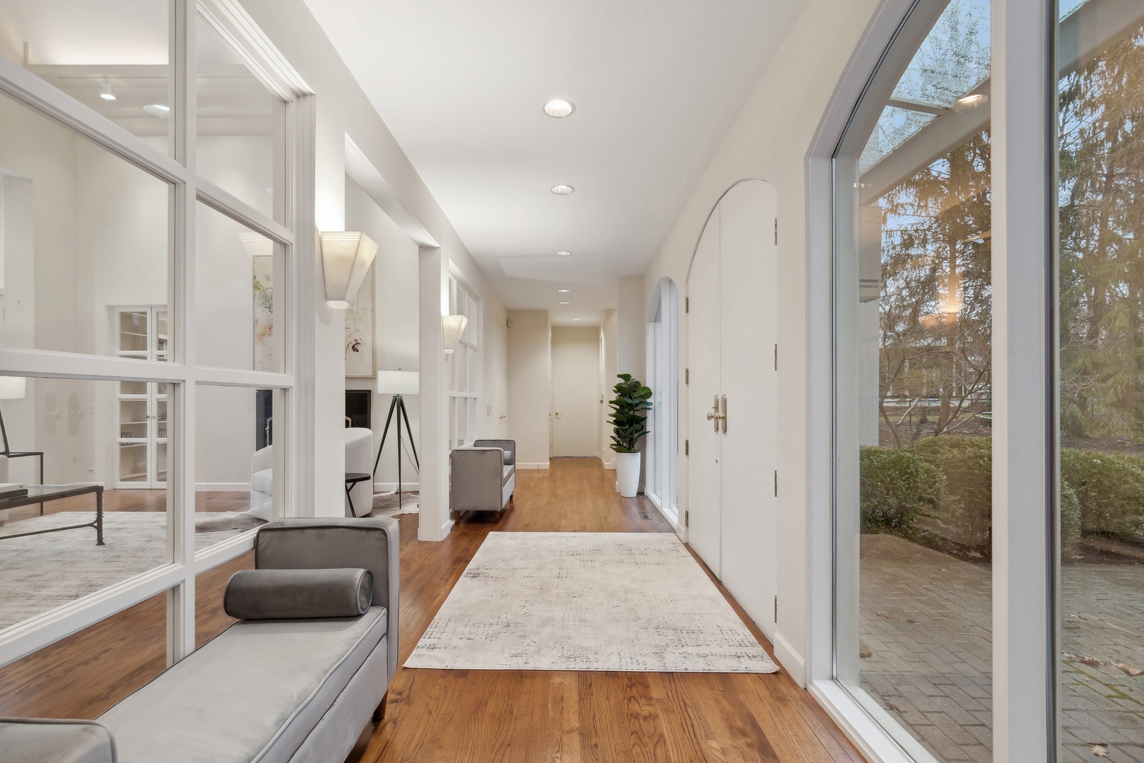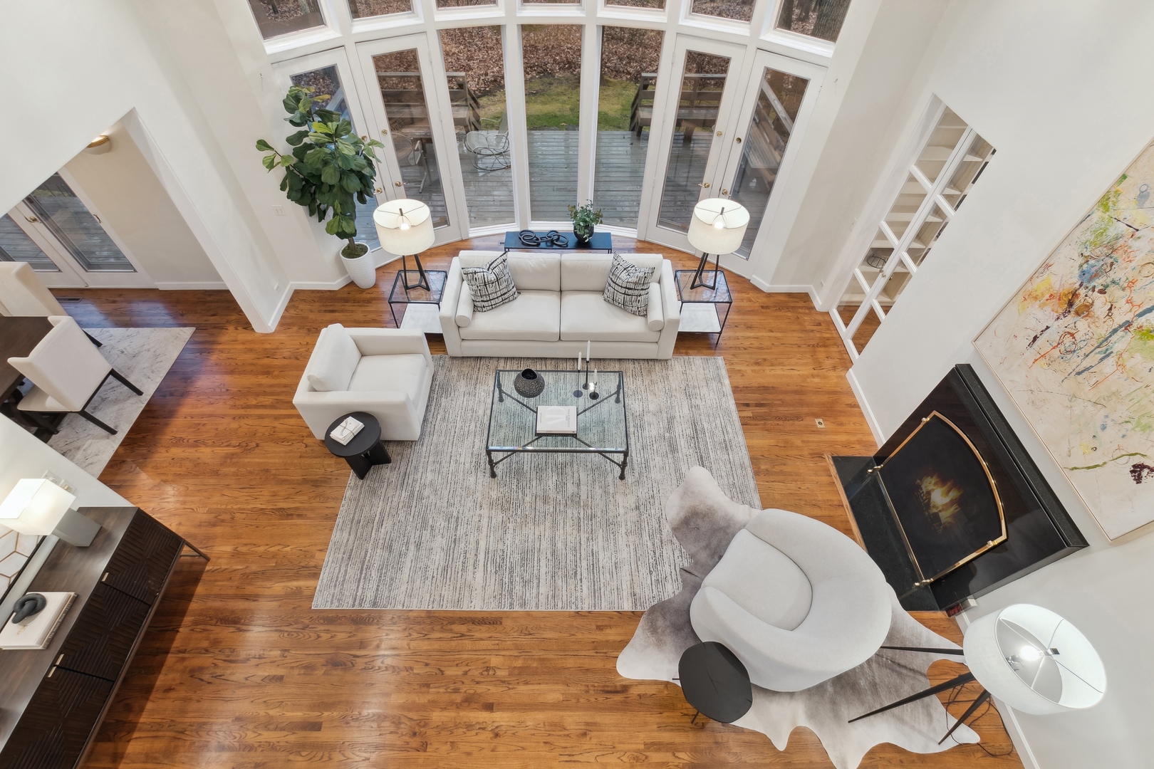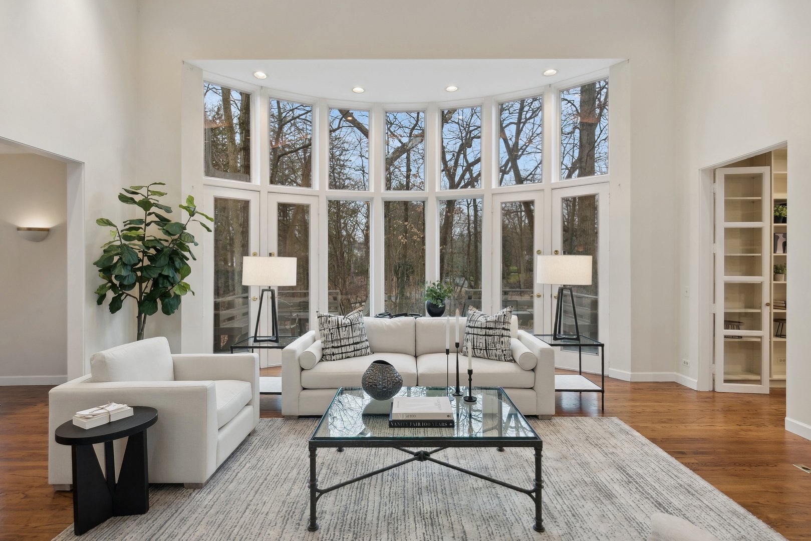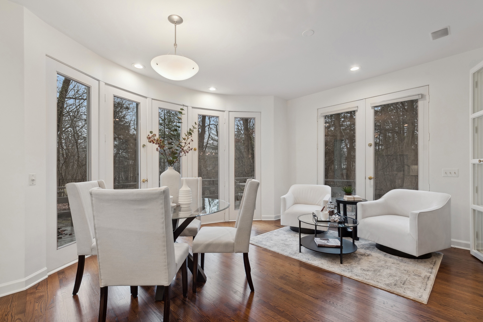 NEWLY REVITALIZED to echo the contemporary essence of this architecturally striking property, the home's interior design harmonizes its modern ambiance with a picturesque ravine setting. Nestled at the end of a quiet cul-de-sac within the sought-after Havenwood Subdivision, this Post-Modern home designed by architect Roy Binkley is a captivating blend of form, function, light, and views. The southeast-facing orientation of the house allows natural light to flood the interior throughout the day. The home spans approximately 4,789 square feet above grade including two walkout lower level rooms. The first floor boasts a dramatic Living Room with a fireplace, soaring ceilings, and a wall of windows overlooking the ravine, a large formal Dining Room, a Kitchen with an island, an eating area, and a sitting room. Other highlights include a Den with built-in custom cabinetry and a first-floor primary or private guest suite with a full bathroom and vaulted ceilings. The second floor features a second primary suite and two large family-sized bedrooms. The lower level is equally impressive, offering a large Family room and an office (or fifth bedroom) with a fireplace, both with exterior access, a full bathroom, an exercise room, and plenty of storage space. Additional features include a first-floor laundry room and a three-car heated garage. From most rooms will you enjoy stunning year-round views of the Ringwood Road ravine, recently restored and maintained by the City of Lake Forest, and boasting beautiful native trees and flowers. Whether you are drawn to the architecturally unique design, the tranquil ravine setting, or this wonderful east Lake Forest neighborhood close to South Park and a short distance to the beach, this property has it all.