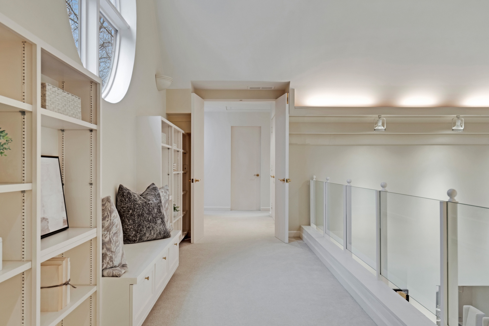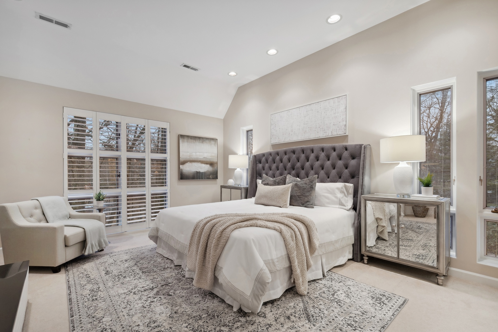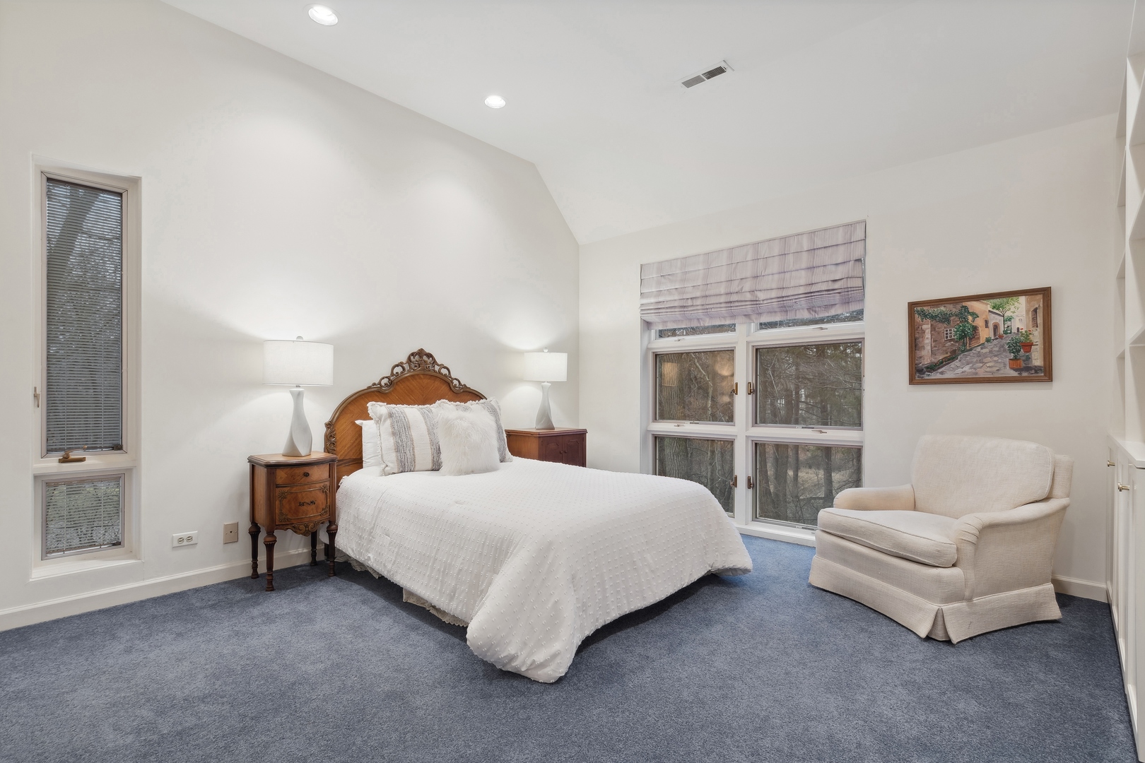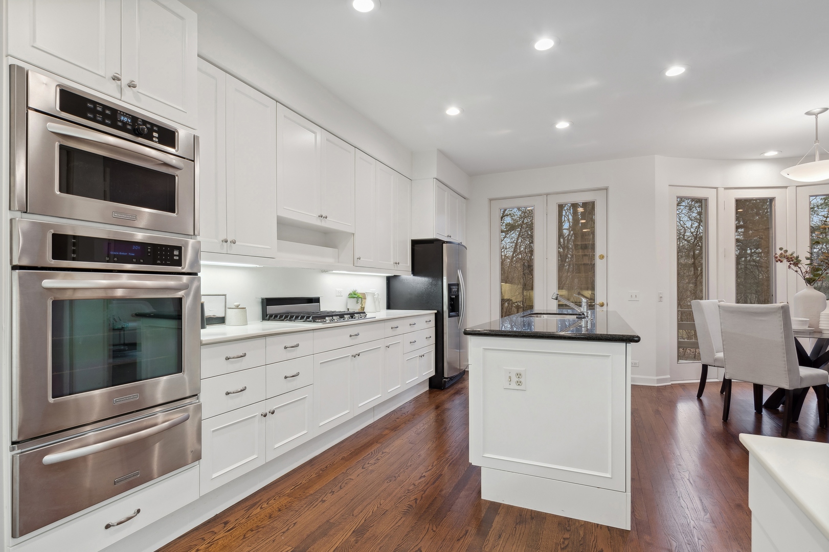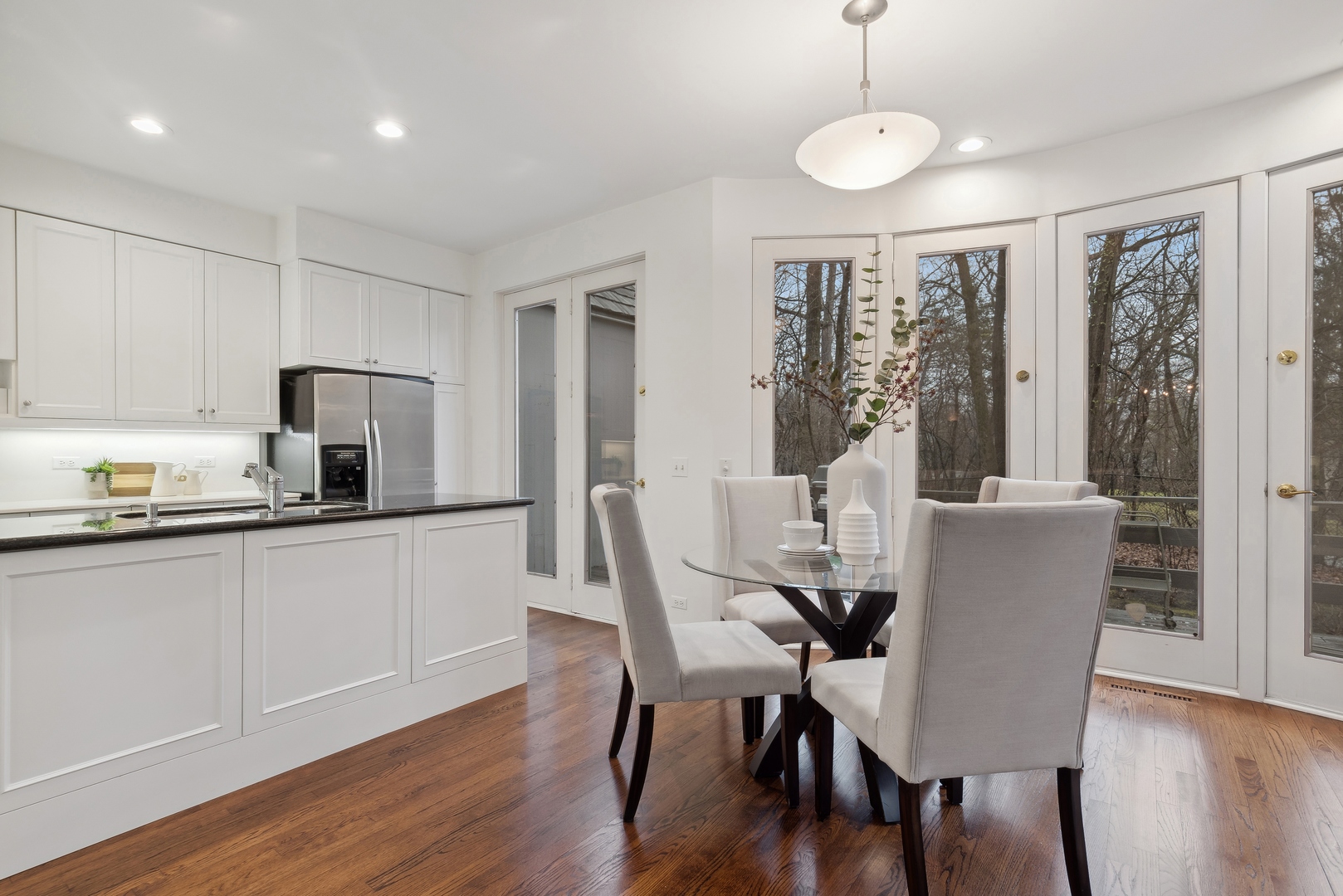 NEWLY REVITALIZED to echo the contemporary essence of this architecturally striking property, the home's interior design harmonizes its modern ambiance with a picturesque ravine setting. Nestled at the end of a quiet cul-de-sac within the sought-after Havenwood Subdivision, this Post-Modern home designed by architect Roy Binkley is a captivating blend of form, function, light, and views. The southeast-facing orientation of the house allows natural light to flood the interior throughout the day. The home spans approximately 4,789 square feet above grade including two walkout lower level rooms. The first floor boasts a dramatic Living Room with a fireplace, soaring ceilings, and a wall of windows overlooking the ravine, a large formal Dining Room, a Kitchen with an island, an eating area, and a sitting room. Other highlights include a Den with built-in custom cabinetry and a first-floor primary or private guest suite with a full bathroom and vaulted ceilings. The second floor features a second primary suite and two large family-sized bedrooms. The lower level is equally impressive, offering a large Family room and an office (or fifth bedroom) with a fireplace, both with exterior access, a full bathroom, an exercise room, and plenty of storage space. Additional features include a first-floor laundry room and a three-car heated garage. From most rooms will you enjoy stunning year-round views of the Ringwood Road ravine, recently restored and maintained by the City of Lake Forest, and boasting beautiful native trees and flowers. Whether you are drawn to the architecturally unique design, the tranquil ravine setting, or this wonderful east Lake Forest neighborhood close to South Park and a short distance to the beach, this property has it all.