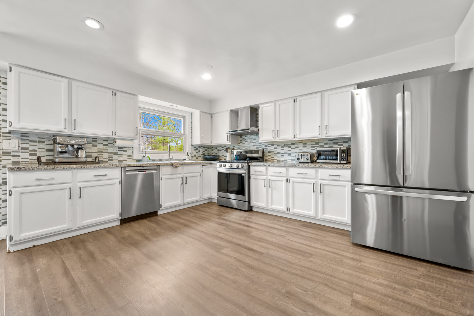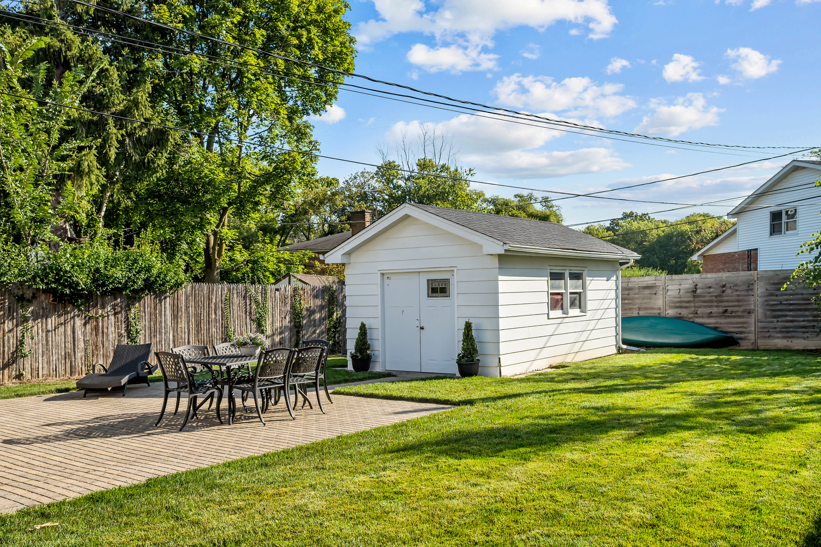 Set near the end of a cul-de-sac beside South Park, this move-in ready home pairs a quiet setting with immediate access to one of the area's best outdoor amenities, including tennis, pickleball, basketball, and bocce ball courts, ball fields, a walking path, play areas, and the bike path. The home features a classic brick exterior and a welcoming front stoop. Major updates include newer kitchen, baths, windows and roof (2020), providing peace of mind for years to come. Inside, the living room is warm and inviting, anchored by a wood-burning fireplace. The kitchen has been thoughtfully updated with white cabinetry, granite countertops, stainless steel appliances, and a generous dining area, with direct access to the backyard and patio for indoor-outdoor living. Two bedrooms, an updated full bathroom and a flexible den or nursery complete the first floor. The finished basement expands the living space significantly, offering a family room or potential third bedroom, a renovated full bath with a soaking tub, laundry area, and stair access to the exterior. Throughout the home, you'll find LED lighting and durable vinyl flooring for a clean, modern feel. Outside, the large fenced backyard includes an oversized shed and paver patio. With 1,893 square feet of total living space (including the finished basement), this home presents an excellent opportunity for buyers seeking a manageable one-story layout or a compelling condo alternative.
