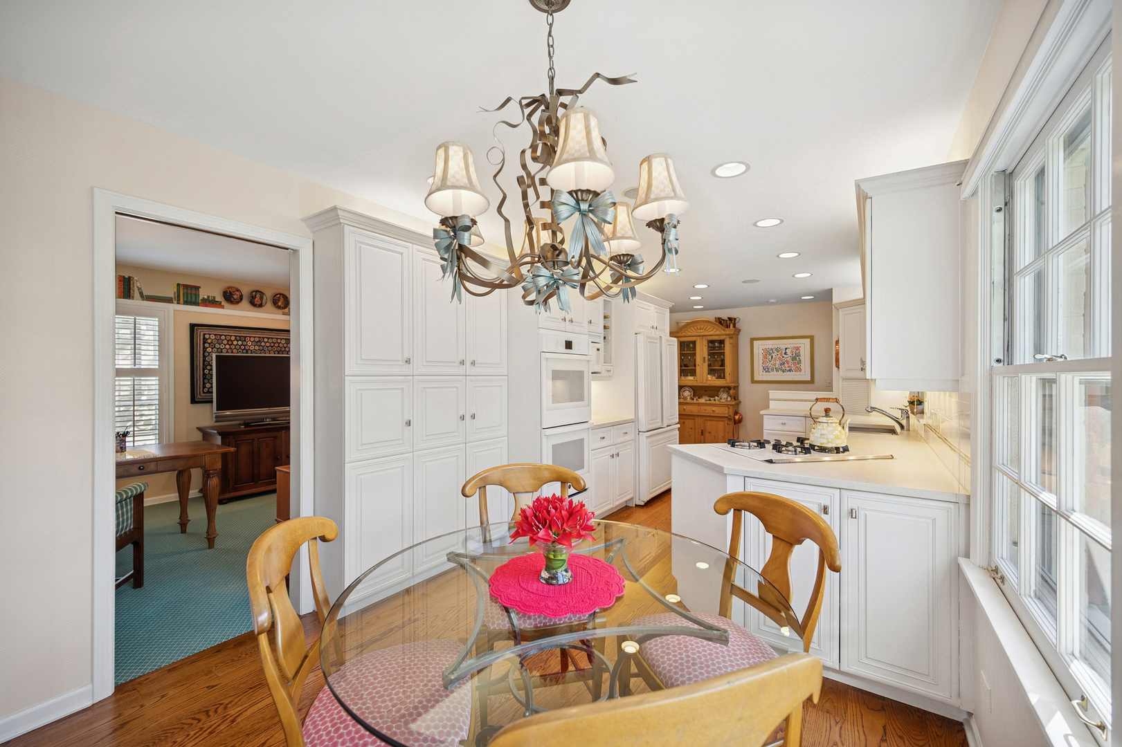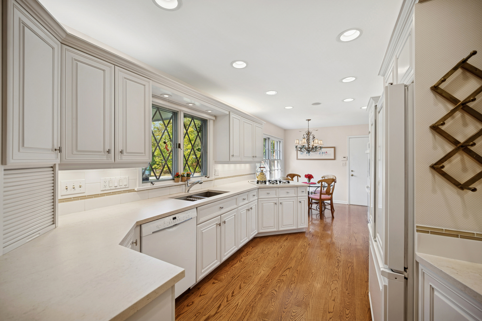 Nestled in the desirable Whispering Oaks Neighborhood, this inviting single-story home, professionally landscaped on .49 acre, features over 3,200 square feet of tastefully finished living space. It includes a family room and a large primary bedroom addition, along with a bright white kitchen, a spacious dining room with built-ins, and a living room with a wood-burning fireplace. The home also offers a versatile den that can serve as a 4th bedroom plus a dedicated office space. The impressive full-footprint basement, spanning more than 3,000 square feet, presents endless possibilities for customization and personal touches." Large 2 tiered cedar deck offers multiple entertaining spaces for friends and family enjoyment.