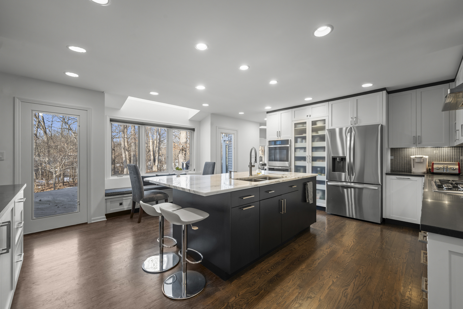 HIGHEST AND BEST OFFERS DUE BY THURSDAY AT 12PM. Just a half block from Cherokee Elementary School, this 4-bedroom, 3.1-bath Colonial in Whispering Oaks offers a great layout and expanded first floor. Set on a beautifully landscaped 0.46-acre lot, the main level features a generous living room, formal dining room, a newer eat-in kitchen with quartz counters and stainless steel appliances, a large family room with fireplace, a private first-floor office overlooking the backyard and deck, and a mudroom with laundry. A full bath adjacent to the office provides added versatility for guests or potential first-floor living. Upstairs, four well-proportioned bedrooms include a primary suite with private bath featuring double sinks and a large walk-in shower, and a shared hall bath with double sinks and a tub/shower which serves the three additional bedrooms. A finished basement includes a recreation room, wine fridge, play room, cedar closet, plus two large storage rooms with built-in shelving. In addition to other updates, the roof was replaced in 2020. This is a nicely improved, well-located home in one of Lake Forest's most established neighborhoods - close to schools, parks, and everyday conveniences.